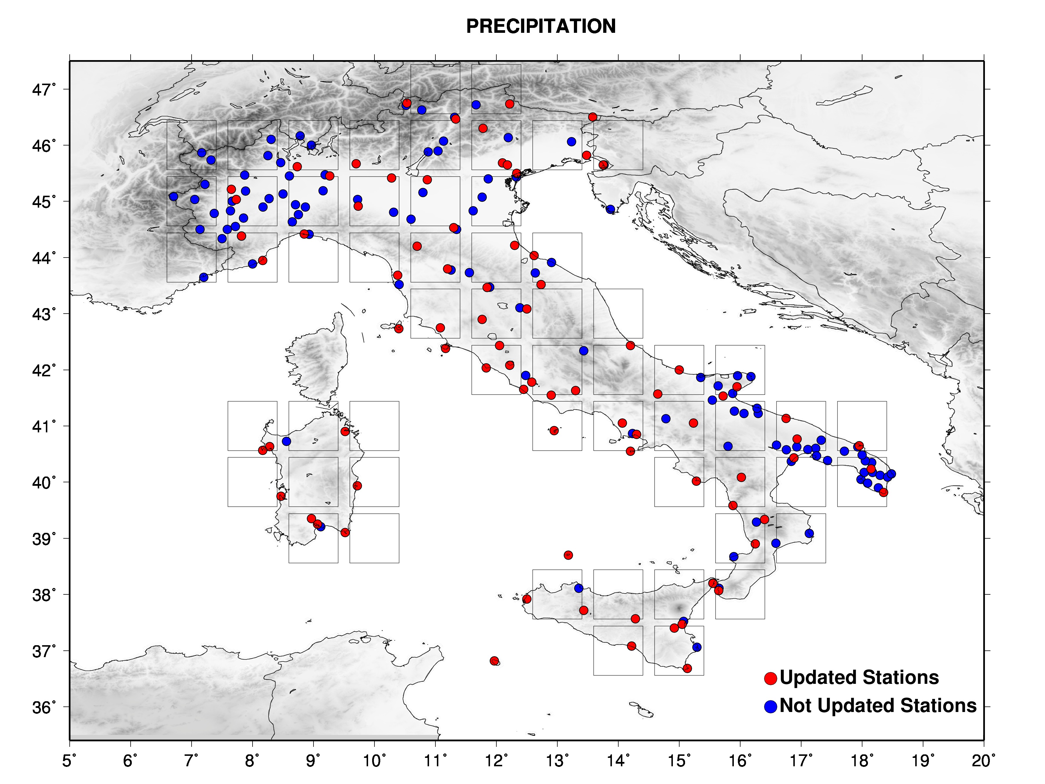 The figures show the data set with different symbols for stations wich are updated in near real time and stations not updated.