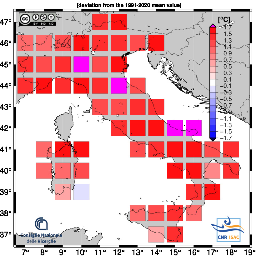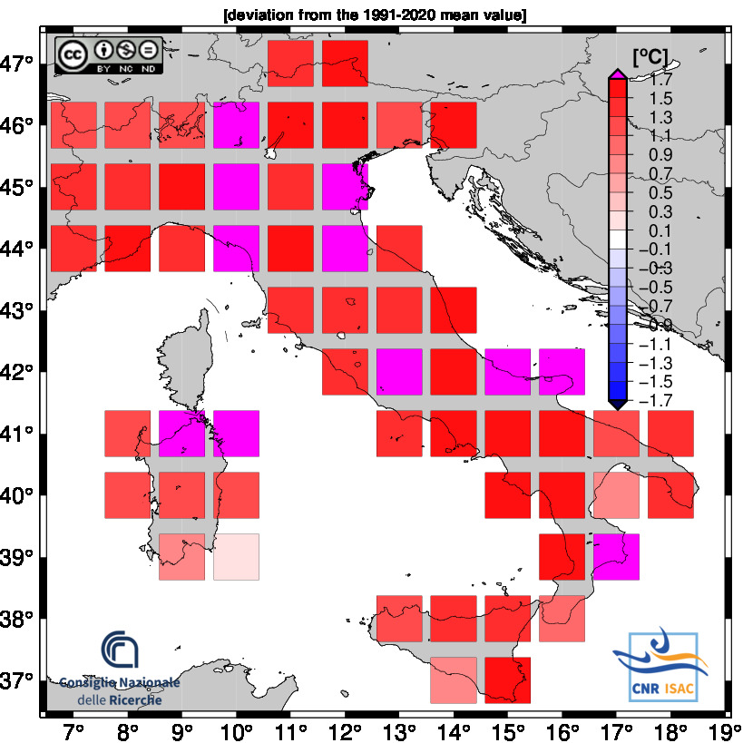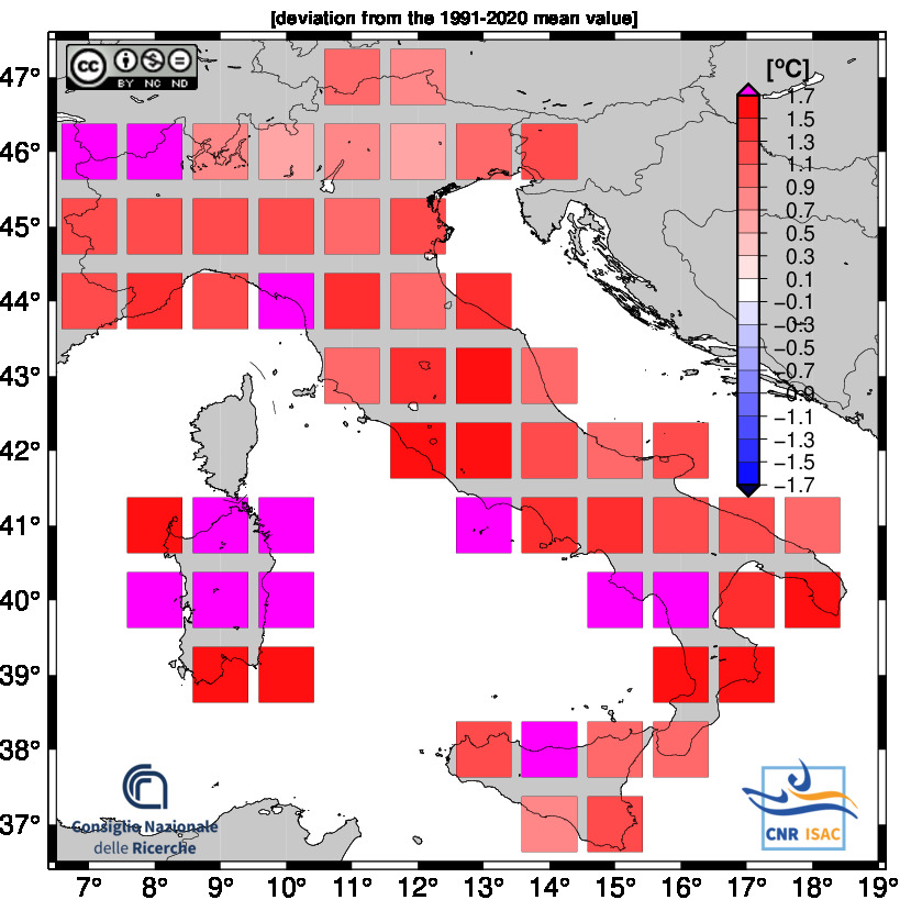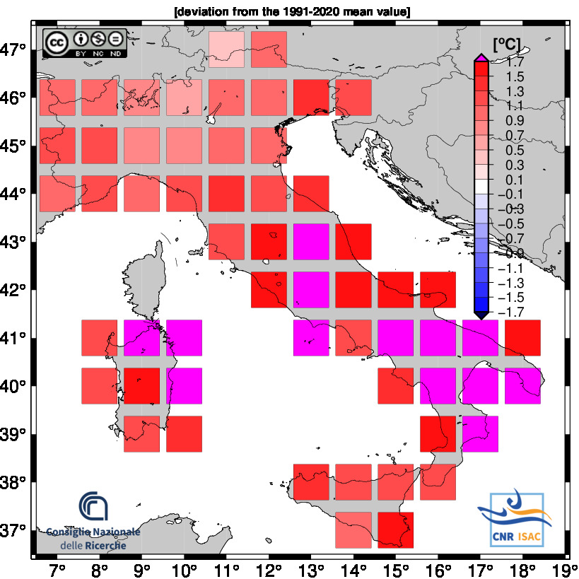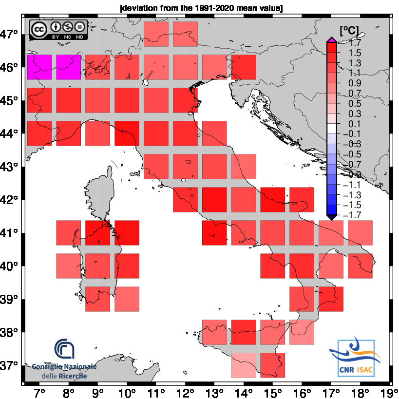 The national mean seires were obtained by averaging all grid boxes over the italian territory