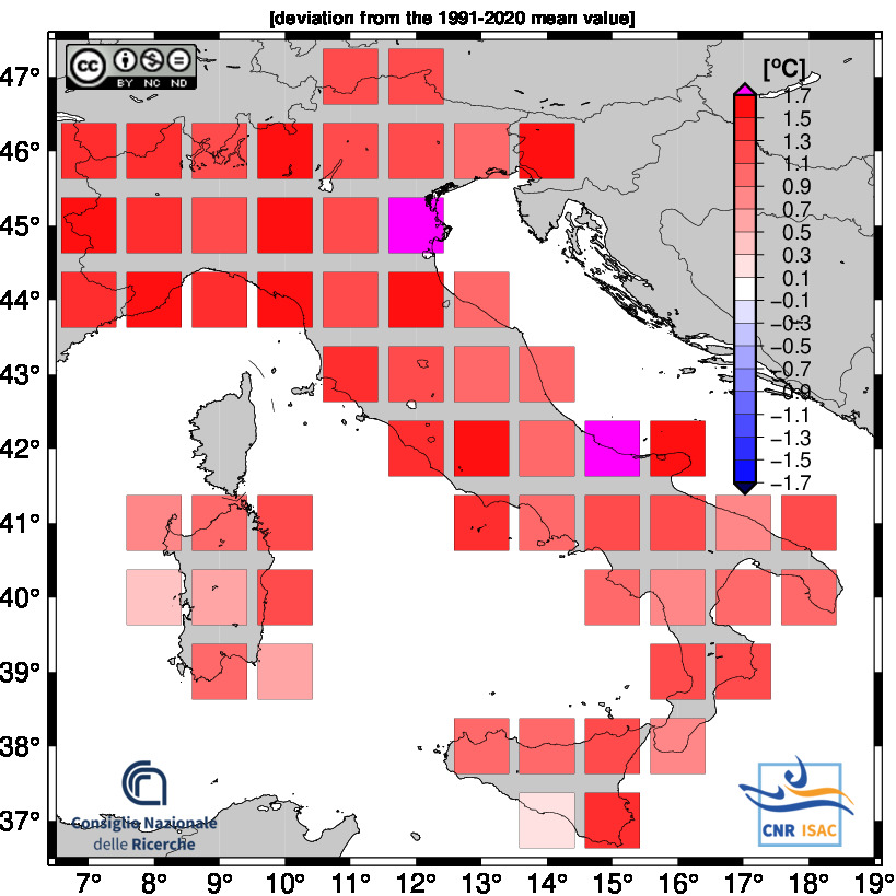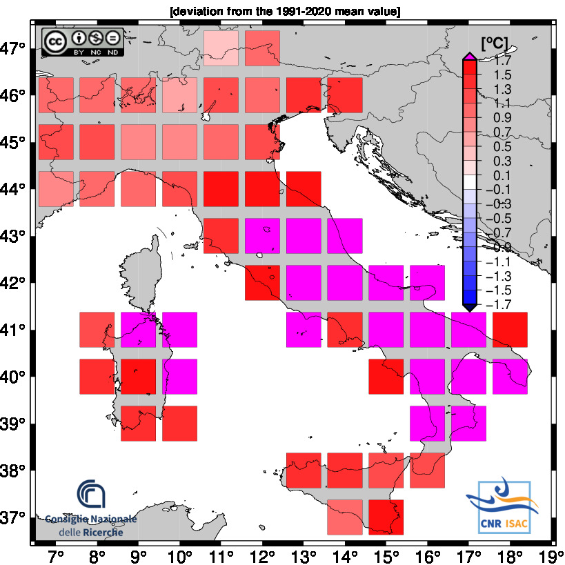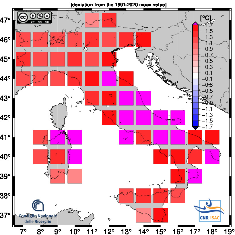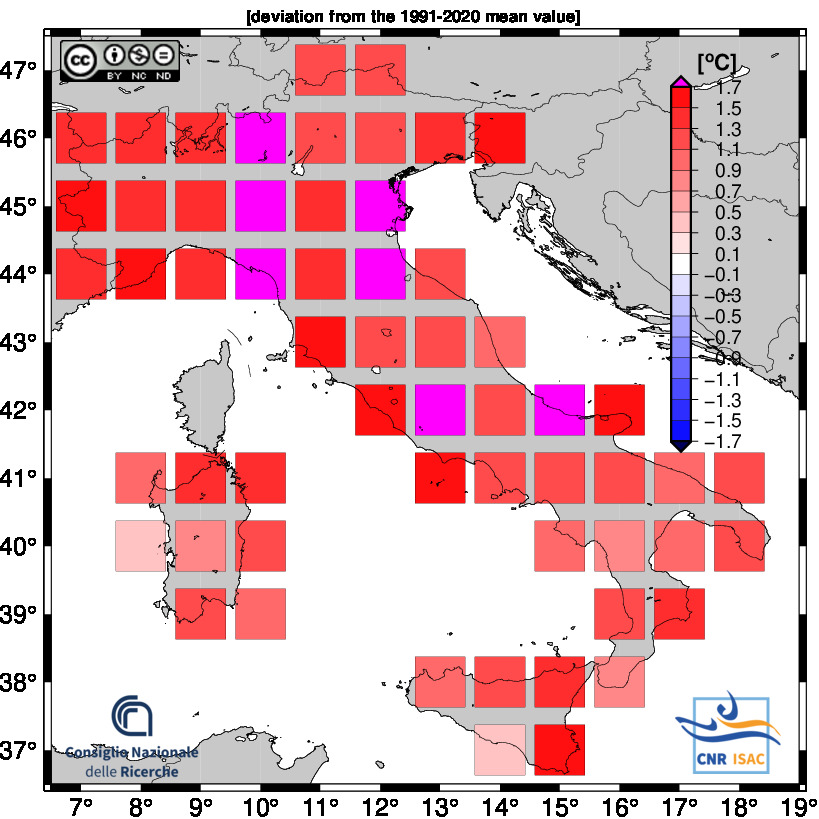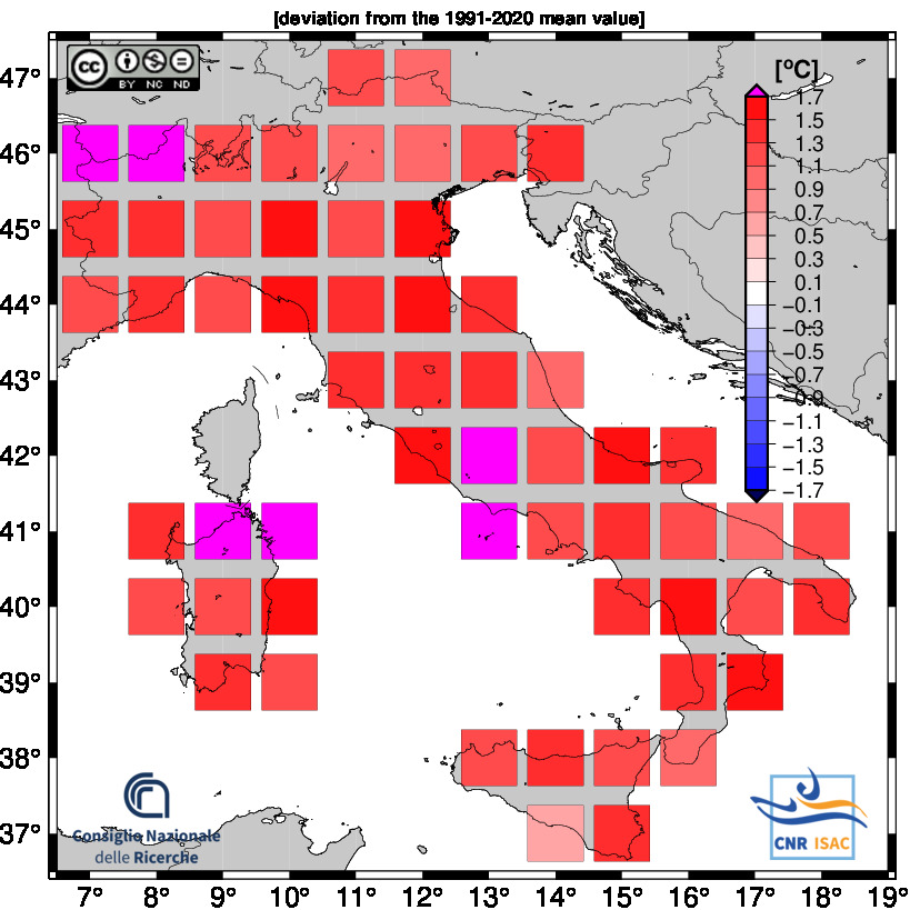 The national mean seires were obtained by averaging all grid boxes over the italian territory