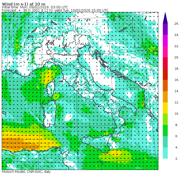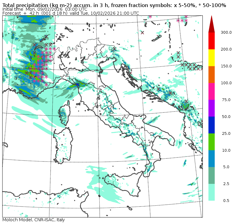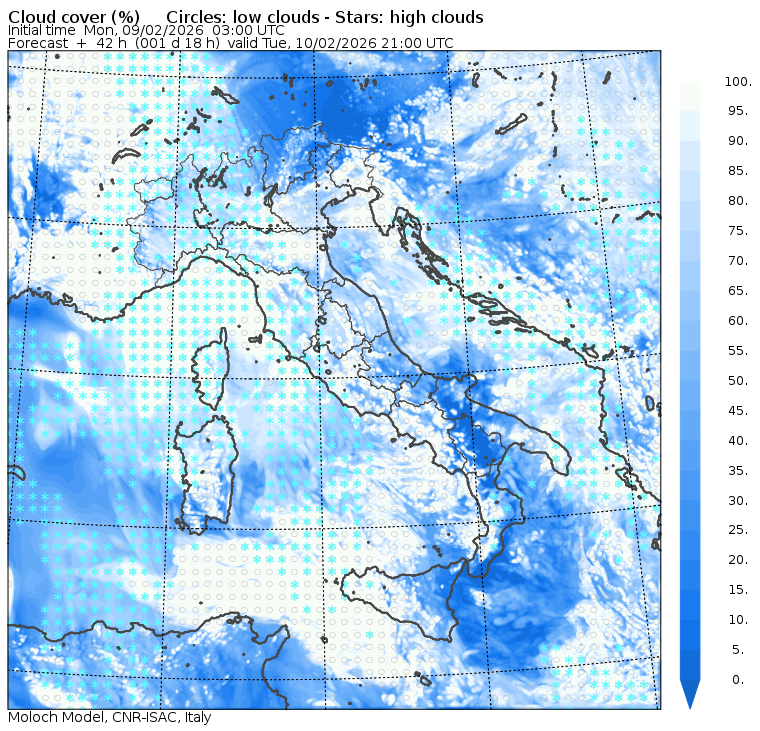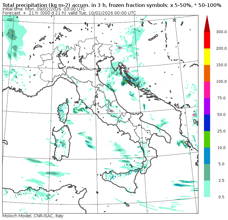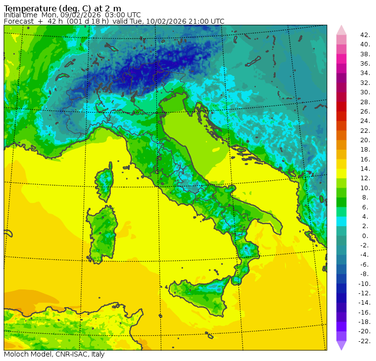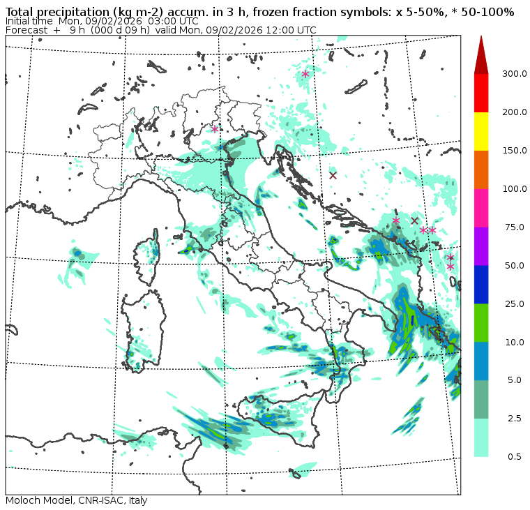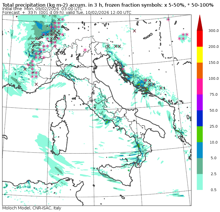 I dati osservati sono acquisiti mediante una stazione meteorologica IRDAM WST 7000, installata a 2 m di altezza sul prato ad Ovest della palazzina ISAC. Le previsioni numeriche con validità 2 giorni sono derivate dal modello MOLOCH, sviluppato da CNR-ISAC, Istituto di Scienze dell'Atmosfera e del Clima del Consiglio Nazionale delle Ricerche, e utilizzato alla risoluzione orizzontale di 1.25 km. Le condizioni iniziali e al contorno per la previsione sono ottenute da analisi (00:00 UTC) e previsioni del modello GFS, NCEP-NOOA (Global Forecast System del National Centers for Environmental Prediction - National Oceanic and Atmospheric Administration, USA). Maggiori dettagli su www.isac.cnr.it/dinamica/projects/forecasts/index.html. Per una valutazione dell'anomalia climatica dell'ultimo mese/stagione/anno nel contesto degli ultimi due secoli di variabilità climatica si veda il link http://www.isac.cnr.it/climstor/climate_news.html. Le informazioni ed i grafici presenti in questo sito sono generati utilizzando dati grezzi e non validati. Pertanto queste informazioni sono fornite così come sono e non sono garantite nella loro correttezza e/o completezza. Le conclusioni derivate dai contenuti del sito sono di responsabilità degli utenti che le hanno formulate. Il CNR declina ogni responsabilità da un uso improprio delle informazioni fornite in questo sito. Per informazioni: infometeobologna @ isac.cnr.it versione beta sviluppata da Mauro Mazzola, Maurizio Busetto, Ubaldo Bonafè, Fabrizio Roccato, Paolo Bonasoni |